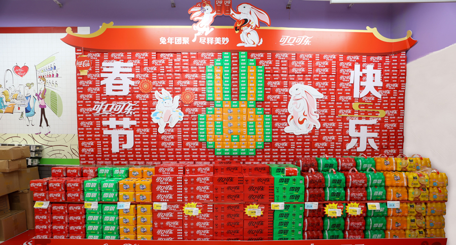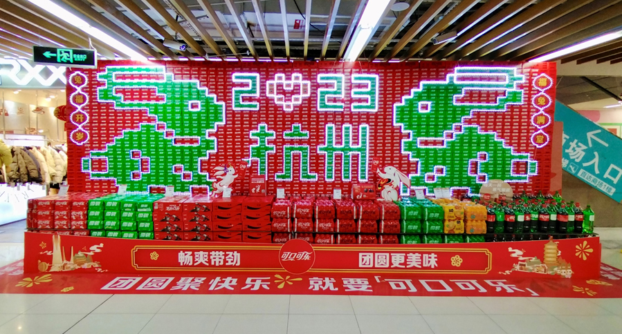 Various markets displayed Coca-Cola’s New Year-themed packaging products in stores. Creative displays made of stacked products not only enhanced the festive atmosphere, but also attracted consumers. The front-line sales staff were busy visiting merchants to help improve store execution to achieve better sales performance.