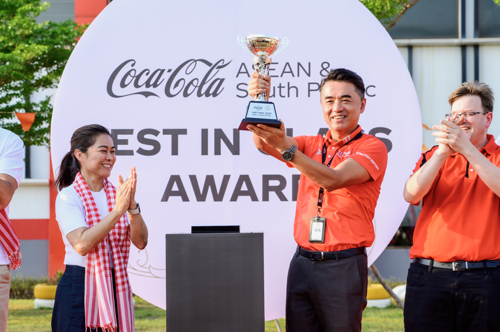 Swire Coca-Cola's Cambodia team has been honoured with the prestigious Technology, Innovation and Supply Chain (TI&SC) Best in Class Award for 2023 by The Coca-Cola Company. This accolade recognises our Cambodia team’s exceptional efforts in driving continuous improvement across critical areas, including: Quality, Safety, Environment & Sustainability, and Productivity.